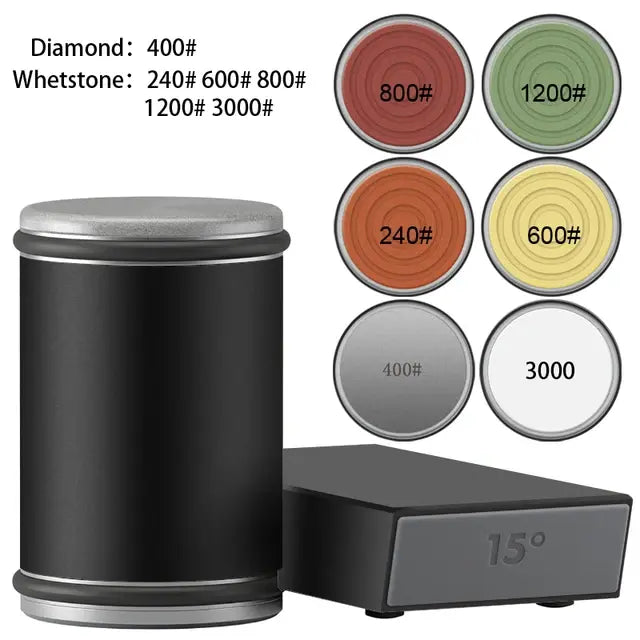 Scopri la comodità di affilare i tuoi coltelli con facilità utilizzando l'Affilatore Magnetico a Rullo. Dotato di una pietra per affilare diamantata e di un sistema di affilatura in legno, questo strumento garantisce lame affilate come rasoi con un accessorio rullo con angolo da 15-20 gradi.