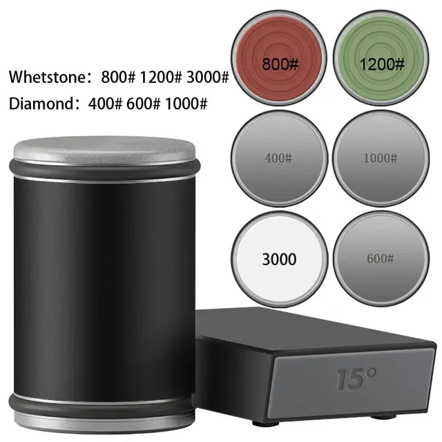 Scopri la comodità di affilare i tuoi coltelli con facilità utilizzando l'Affilatore Magnetico a Rullo. Dotato di una pietra per affilare diamantata e di un sistema di affilatura in legno, questo strumento garantisce lame affilate come rasoi con un accessorio rullo con angolo da 15-20 gradi.